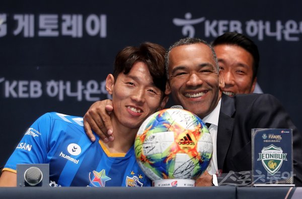 전북 현대 모라이스 감독이 울산 현대 김보경과 포즈를 취하고 있다.