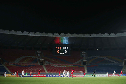 15일 평양 김일성경기장에서 열린 2022카타르월드컵 아시아 2차 예선(H조) 3라운드 남북전은 세계 축구사에 유례가 없는 ‘이상한’ 경기였다. 경기장 안팎의 소식을 전달해줄 미디어도 없었고, TV 생중계도 없었다. 심지어 북한은 자체 무관중 경기를 진행했다. 이날 아시아축구연맹(AFC)이 집계한 공식 관중은 100명. 선수단을 제외하고 정몽규 회장 등 대한축구협회 임직원들이 20여 명 동행했다는 점과 지아니 인판티노 회장 등 국제축구연맹(FIFA) 일행이 찾았다는 점을 감안하면 북한에 거주하는 인원은 절반도 채 되지 않는다.