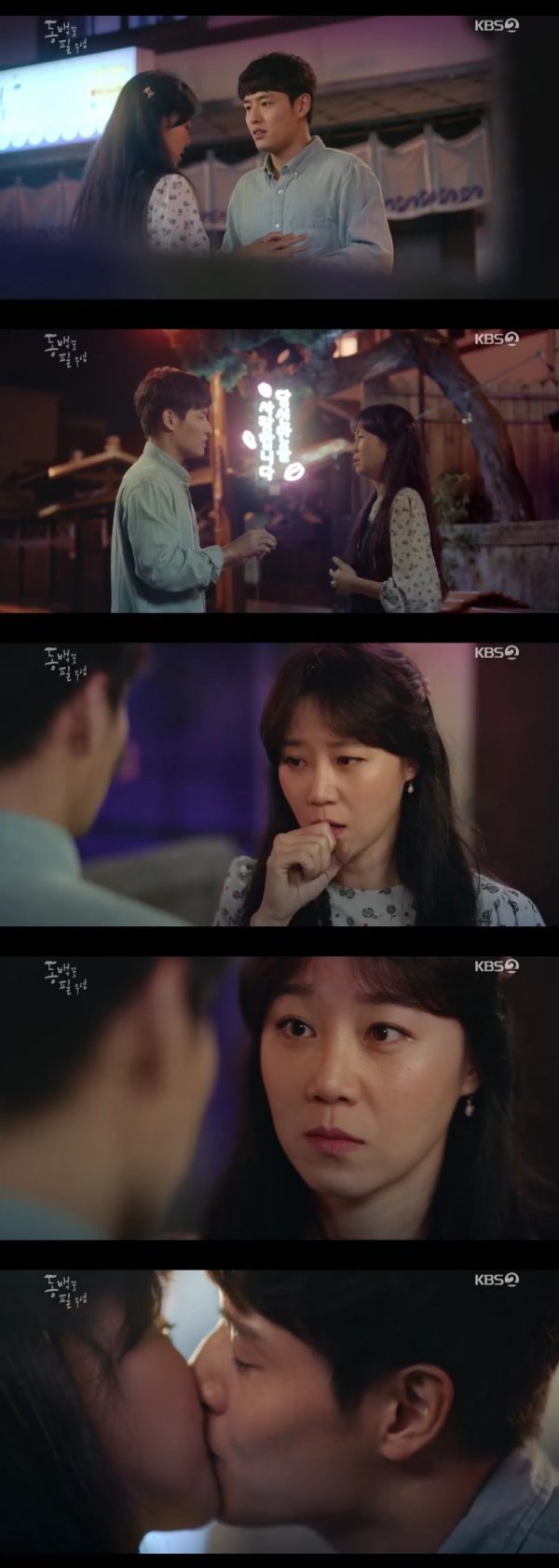 16일 오후 방송된 KBS2 수목드라마 ‘동백꽃 필 무렵’(이하 ‘동백꽃’)에서는 동백(공효진 분)과 황용식(강하늘 분)이 키스하는 장면이 그려졌다.