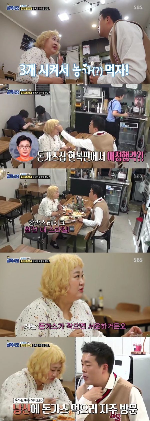 이날 옛날돈가스집에 홍윤화, 김민기 부부가 등장했다. 홍윤화는 “3개 시켜서 나눠먹자”고 말했고, 두 사람은 돈가스와 치즈돈가스, 함박스테이크를 주문했다.
