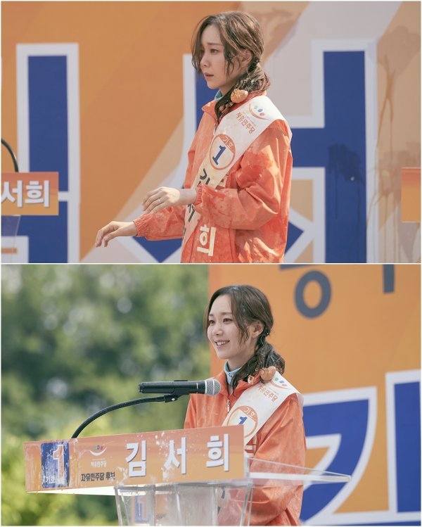 서희의 아버지 김승철(김종수)은 당 대표 홍민국(송영창)이 “송주는 김승철 핏줄이 아니면 안 된다니까”라고 할 정도로 지역주민들의 절대적인 지지를 등에 업고 있었다. 그래서 서희의 선거는 쉽게 흘러갈 것 같았고, ‘김승철의 딸, 송주의 딸 기호 1번’으로 유세를 시작했다. 그런데 17일 공개된 스틸컷에서 서희는 무슨 영문인지 달걀과 흰 가루를 맞고 엉망이 돼 있다. 시작과 함께 시민들의 반대에 부딪힌 것이다.