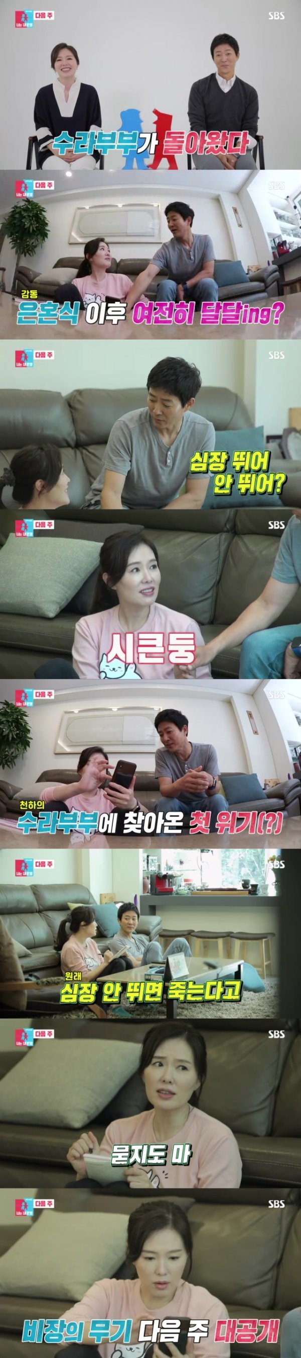 이에 최수종은 서운한 듯한 모습을 보였고, 그럼에도 하희라는 “앞으로 나한테 설레냐고 묻지 마라”라고 답해 긴장감을 자아냈다. 이와 함께 ‘수라부부에 찾아온 첫 위기’라는 자막이 등장해 두 사람 사이에 어떤 일이 생긴 것인지 궁금증을 더했다.