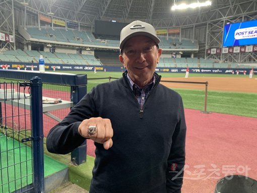 예이츠 코치는 키움 히어로즈와의 플레이오프 1차전이 열린 14일 한국 땅을 밟았다. 다소 침체된 분위기로 가을 무대를 밟는 SK 선수단을 응원하기 위함이었다. 15일 곧장 인천SK행복드림구장을 찾아 선수단과 인사를 나누고 2차전을 지켜봤던 예이츠 코치는 3차전을 앞둔 17일 고척돔에서도 선수들의 곁을 지켰다. 그는 오른손에 낀 2018년 우승 반지를 선수들에게 일일이 보여주며 ‘자부심’을 불러일으켰다.