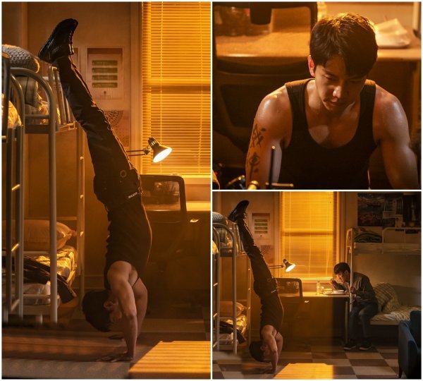 이와 관련 이승기가 CG가 의심될 만큼 완벽하고 정교한 자세로 물구나무서기를 해낸 모습이 포착됐다. 극중 차달건이 테러 용의자 김우기(장혁진)를 감시하는 동시에 체력을 다지고 있는 장면으로, 차달건은 두 팔에만 온전히 체중을 의지한 채 거꾸로 서는 물구나무 포즈를 취한 후, 땀을 흘리며 숨을 고르는 모습이다. 차달건의 탄탄한 근육질 팔뚝과 그 위에 새겨진 ‘戰神(전신)’ 문신이 단연 시선을 잡아채는 가운데, 그 옆에 수갑을 찬 김우기는 차달건의 진기한 묘기가 내심 놀라운지 허겁지겁 죽을 들이키면서도 힐끔힐끔 쳐다보고 있어 눈길을 끈다.