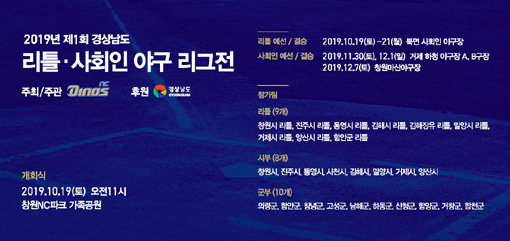 NC 다이노스가 경상남도와 함께 10월 19일부터 12월 7일까지 제1회 경상남도 리틀·사회인 야구 리그전을 연다.