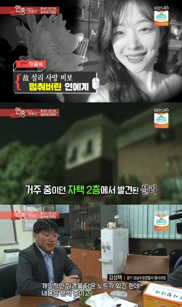 18일 오후 방송된 KBS2 ‘연예가중계’에서는 故 설리의 사망 비보, 그리고 이로 인해 멈춰버린 연예계에 대한 이야기가 그려졌다.