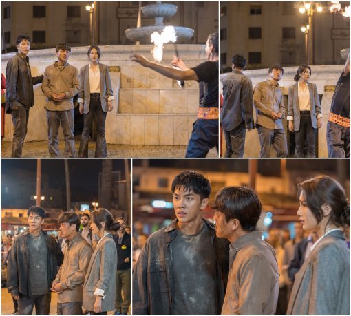 이와 관련 19일(오늘) 밤 10시 방송되는 ‘배가본드’ 10회에서는 이승기와 배수지, 장혁진이 재투성이가 된 처참한 몰골로 모로코 야시장에 나타난 모습이 담겨 궁금증을 높이고 있다. 극중 차달건과 고해리, 김우기가 북적이는 인파 속 차력사가 불 쇼를 펼치는 화려하고 왁자한 분위기의 모로코 야시장에 덩그러니 서 있는 장면. 모두가 즐겁고 행복한 표정으로 밤의 풍경을 즐기고 있는 가운데, 세 사람만이 엉망이 된 옷을 입고 불안한 눈빛으로 경계 태세를 갖추고 있다.