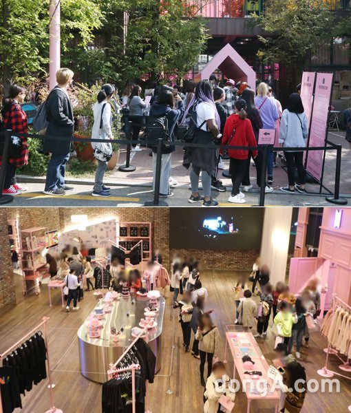 ‘방탄소년단을 보고 즐기자!’ 18일 서울 강남구 역삼동에 문을 연 방탄소년단의 팝업스토어 ‘하우스 오브 BTS’에 팬들의 발길이 이어지고 있다. 20일 오전 팬들이 입장을 기다리는 가운데(위쪽) 또 다른 팬들이 1층 메인 쇼룸을 둘러보고 있다. 국경원 동아닷컴 기자 onecut@donga.com