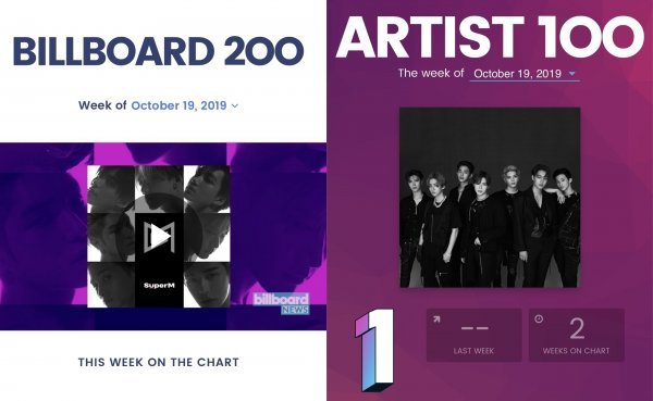 SuperM은 지난주 빌보드 메인 차트인 ‘빌보드 200’과 ‘아티스트 100’을 비롯해, ‘톱 앨범 세일즈’, ‘디지털 앨범’, ‘월드 앨범’, ‘톱 커런트 앨범’, ‘인터넷 앨범’, ‘월드 디지털 송 세일즈’까지 총 8개 차트에서 1위를 기록하는 성과를 거뒀다.