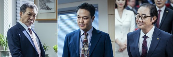 JTBC 새 월화드라마 ‘보좌관: 세상을 움직이는 사람들 시즌2’(극본 이대일, 연출 곽정환, 제작 스튜디오앤뉴, 이하 보좌관2)는 금빛 배지를 거머쥔 국회의원 장태준(이정재)의 위험한 질주, 그 치열한 여의도 생존기를 그린다. 오늘(21일) ‘보좌관2’ 측은 송희섭(김갑수), 오원식(정웅인), 조갑영(김홍파)의 스틸컷을 공개하며 검은 속내를 숨긴 이들이 장태준, 그리고 강선영(신민아)과 더욱 첨예하게 대립할 것이라 밝혔다.