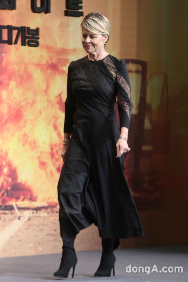 할리우드 배우 린다 해밀턴이 21일 오전 서울 종로구 포시즌스호텔에서 열린 외화 \'터미네이터 다크페이트\' 내한기자회견에 참석하고 있다.