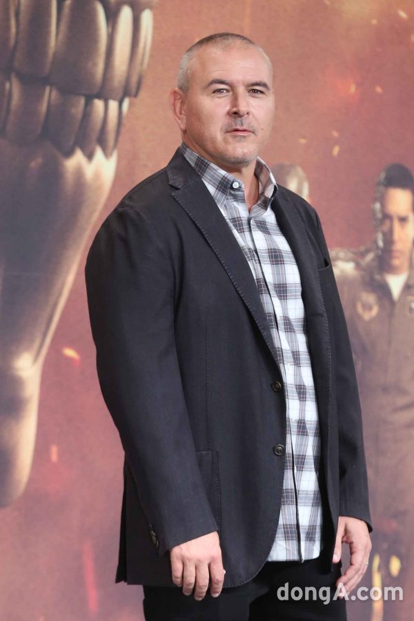 할리우드 배우 감독 팀 밀러가 21일 오전 서울 종로구 포시즌스호텔에서 열린 외화 \'터미네이터 다크페이트\' 내한기자회견에 참석해 포토타임을 갖고 있다.