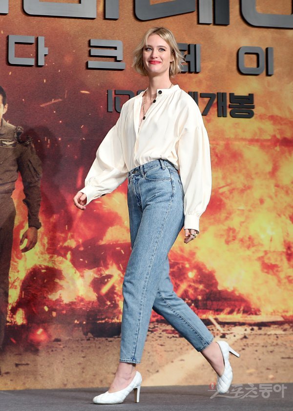 배우 맥켄지 데이비스가 21일 서울 종로구 포시즌스 호텔 서울에서 열린 영화 ‘터미네이터 : 다크 페이트’ 내한 기자회견에 참석하기 위해 입장하고 있다.