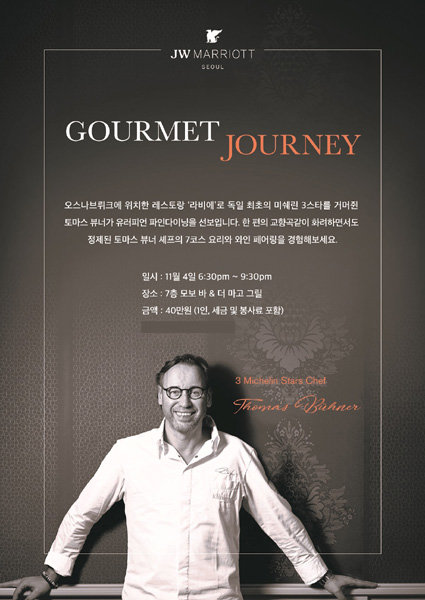 JW 메리어트 서울은 11월 4일 7층 더 마고 그릴(The Margaux Grill)에서 독일 최초의 미슐랭 3스타 셰프 토마스 뷰너를 초청해 갈라 디너를 진행한다.