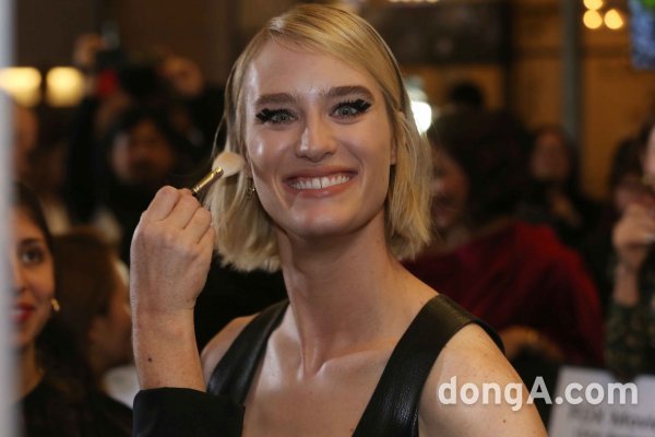 할리우드 배우 맥켄지 데이비스가 21일 오전 서울 영등포구 IFC몰에서 열린 외화 \'터미네이터 다크페이트\' 레드카펫 행사에 참석해 포즈를 취하고 있다.
