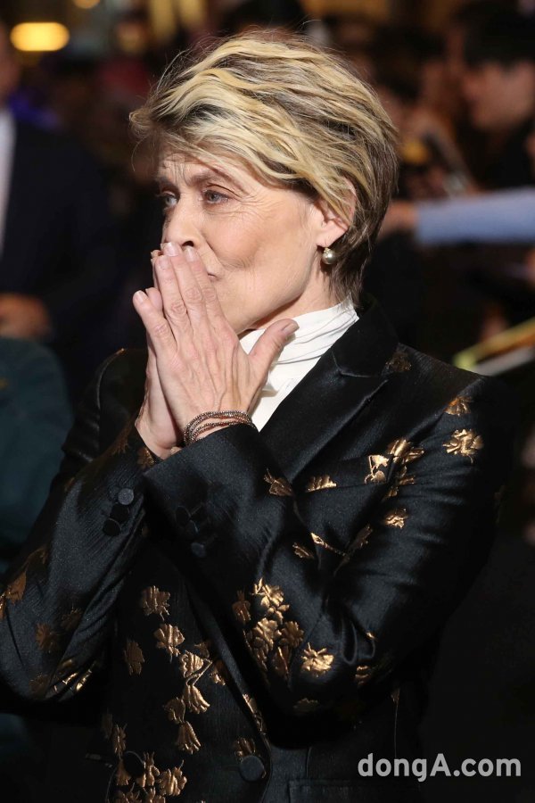 할리우드 배우 린다 해밀턴이 21일 오전 서울 영등포구 IFC몰에서 열린 외화 \'터미네이터 다크페이트\' 레드카펫 행사에 참석해 포즈를 취하고 있다.