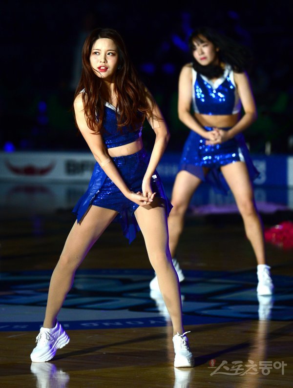 21일 경기도 용인실내체육관에서 열린 ‘하나원큐 2019-2020 여자프로농구’ 우리은행과 삼성생명 경기에서 치어리더가 공연을 펼치고 있다.