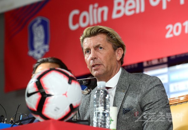 22일 서울 종로구 신문로 축구회관에서 열린 여자 축구대표팀 감독 취임식에서 신임 콜린 벨 감독이 취재진의 질문에 대답하고 있다.