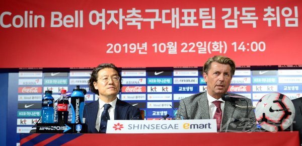 22일 서울 종로구 신문로 축구회관에서 열린 여자 축구대표팀 감독 취임식에서 신임 콜린 벨 감독이 취재진의 질문에 대답하고 있다.