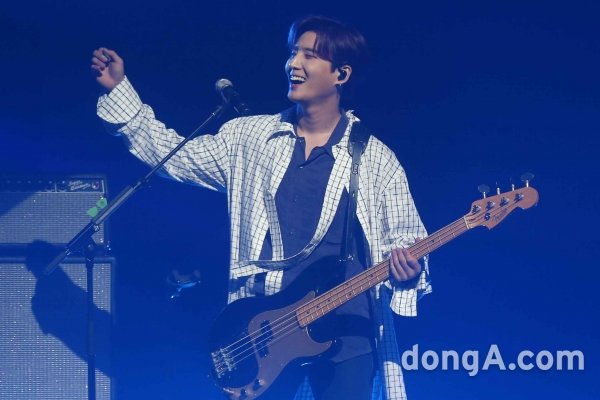 밴드 데이식스(DAY6)의 영케이가 22일 오후 서울 광진구 예스24 라이브홀에서 열린 정규 3집 \'더 북 오브 어스 : 엔트로피(The Book Of Us: Entropy)\' 발매 기념 프레스 쇼케이스에서 공연을 선보이고 있다.