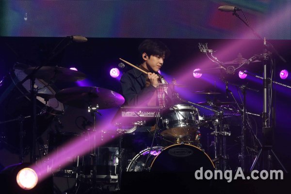 밴드 데이식스(DAY6)의 도운이 22일 오후 서울 광진구 예스24 라이브홀에서 열린 정규 3집 \'더 북 오브 어스 : 엔트로피(The Book Of Us: Entropy)\' 발매 기념 프레스 쇼케이스에서 공연을 선보이고 있다.