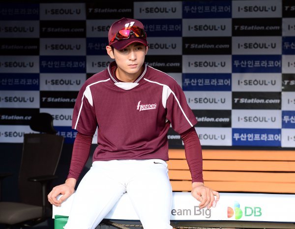 경기에 앞서 키움 이정후가 두산의 훈련을 지켜보고 있다.