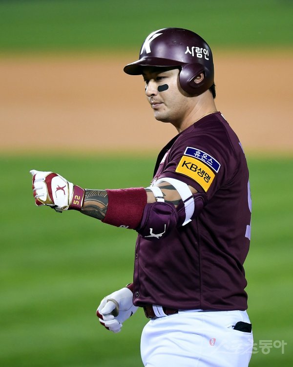 1회초 2사 2루에서 키움 박병호가 1타점 적시타를 날린 뒤 환호하고 있다.