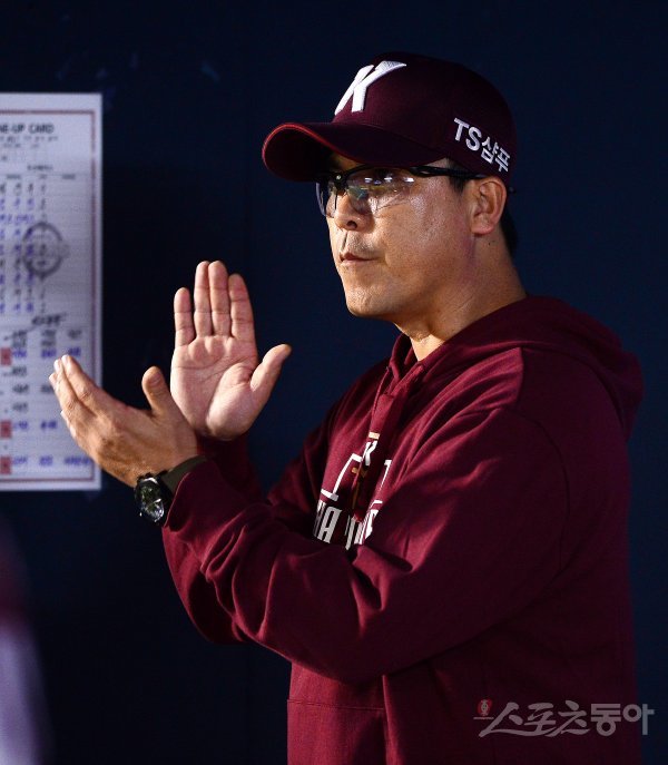 키움 장정석 감독이 박수를 치며 선수들을 독려하고 있다.