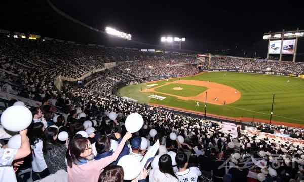 2만 5천명의 만원 관중이 들어차 응원을 펼치고 있다. 2015년 10월 26일부터 한국시리즈 21경기 연속 매진을 이어갔다.