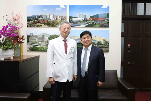서울대학교병원 김연수 병원장과 명지병원 김진구 병원장은 22일 양 기관의 의료진 교류와 임상 및 연구 협력 활성화를 적극 확대하는 방안 등을 논의하는 간담회를 가졌다.