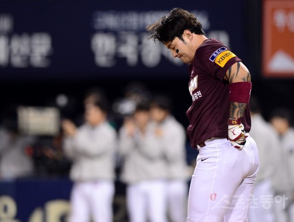 키움 박병호가 3회초 2사 헛스윙 삼진을 당한 후 고개를 떨구고 있다.