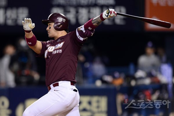 키움 박병호가 6회초 1사 1루에서 역전을 만드는 2루타를 치고 있다.