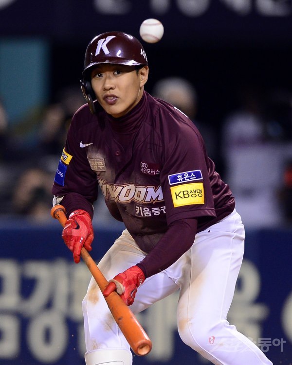 키움 송성문이 8회초 무사 1루에서 희생번트를 시도했으나 실패하고 있다.