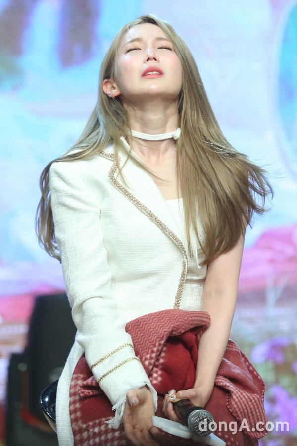 그룹 아리아즈의 윤지가 24일 오전 서울 강남구 일지아트홀에서 열린 첫번째 미니앨범 \'그랜드 오페라\' 발매 기념 미디어 쇼케이스에서 데뷔 소감을 밝히며 눈물을 참고 있다.동아닷컴 국경원 기자 onecut@donga.com