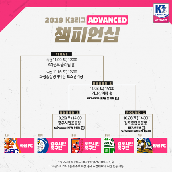 K3리그 최강자를 가리는 ‘2019 K3리그 어드밴스 챔피언십’이 오는 26일(토)부터 개최된다.