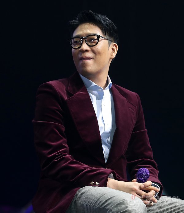 래퍼 MC몽이 25일 서울 광진구 YES24 라이브홀에서 단독 콘서트를 앞두고 열린 음감회에서 취재진의 질문을 들으며 미소를 짓고 있다.