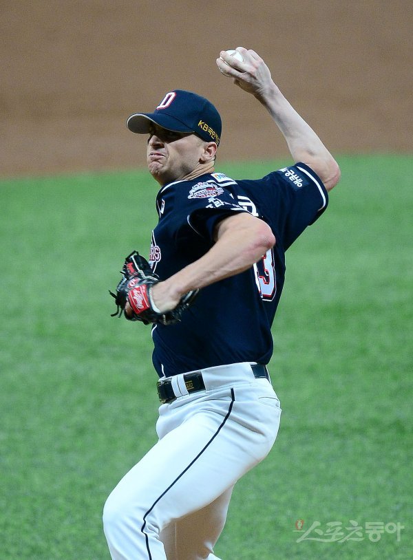 선발 투수로 등판한 두산 후랭코프가 역투하고 있다.