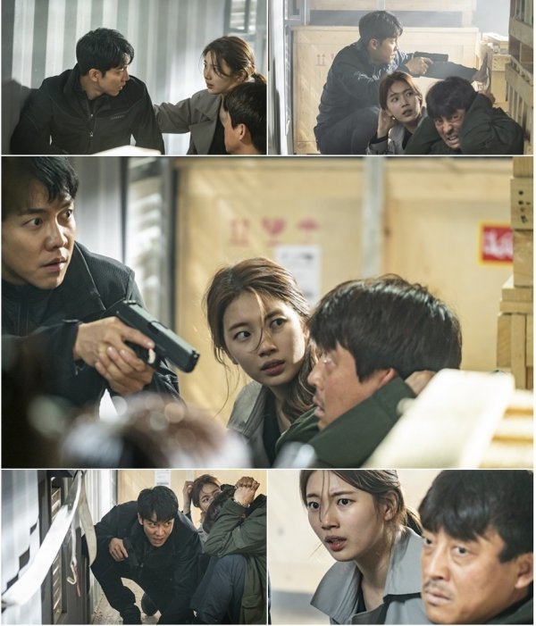 그런가하면 이승기와 배수지, 장혁진이 열연한 ‘사생결단 귀국길’은 울산광역시 남구 일대에서 촬영됐다. 세 사람은 서로의 목소리도 간신히 들릴 만큼 강한 바닷바람이 불었던 궂은 날씨에도 불구하고 일찍부터 현장에 도착해 대본을 체크하고 몸을 풀었다. 이어 본격 촬영이 이뤄질 공간인 컨테이너가 도착하자 생각보다 커다란 규모와 더불어 널찍한 실내 공간을 둘러보며 연신 놀라움의 감탄을 터뜨리기도 했다. 이내 내부로 들어선 세 사람은 집중력을 끌어올려 대사와 동선을 맞춘 후 어떤 대역도 없이 직접 몸을 써 가며 사정없이 뒹구르고, 뒤엉키고, 넘어지고, 비틀대는, 몸을 던진 액션 투혼을 발휘했다.