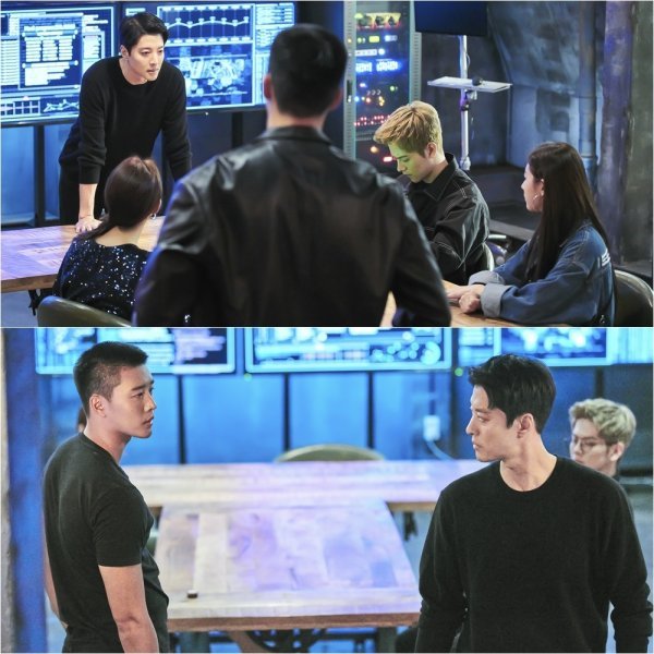그런 가운데, 작전 회의 중 ‘해체 위기’를 맞은 ‘레버리지’ 팀의 모습이 공개돼 이목을 집중시키고 있다. 리더 이동건(이태준 역)과 용병 출신 파이터 김권(로이 류 역)이 서로의 눈을 바라보며 팽팽한 신경전을 펼치고 잇는 것. 두 사람의 날카로운 눈빛이 긴장감을 높이고 있다.