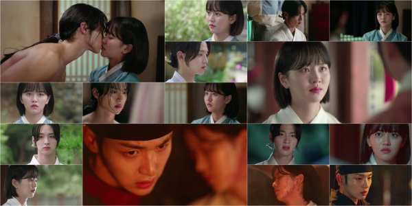 이미 녹두와 동주의 마음은 서로를 향하고 있었다. ‘마님’과 ‘율무’가 불러일으킨 오해와 질투 속에 자신들만 모르는 감정을 싹틔우며 혹독한 입덕부정기를 겪은 두 사람. 가족들의 죽음 이후 어둠을 두려워하는 동주를 위해 방 안의 불을 밝혀준 녹두. 그날 밤, 녹두는 “고뿔에 걸려 기침이 터질 때처럼 숨길 수 없는”연심을 자각했다. 동주 역시 잠든 녹두를 보며 “소용없는 짓 안 하기로 했는데. 하면 안 되는데”라고 자신의 마음을 부정했지만, 이미 막을 새 없이 피어난 감정의 불씨는 꺼뜨릴 수 없었다. 동주를 향한 마음을 깨달은 녹두의 직진은 거침없었다. 하지만 동주는 복수를 위해 살아왔기에 자신의 마음을 꾹꾹 눌러 담으며 그의 마음을 애써 외면했다. 녹두는 “내가 너 좋아해”란 돌직구 고백으로 동주를 흔들었다. 옛 정인 율무를 핑계로 자신의 마음을 거절하려는 동주에게 “그놈은 너 봐도, 너는 그놈 안 봐. 네가 보는 거 나야”라며 기습적으로 입을 맞췄다. 동주가 향하는 마음의 방향을 묻는 녹두와 차마 부정하지 못하는 동주. 말없이 서로를 바라보다 다시금 서로에게 다가서는 녹두와 동주의 애틋한 첫 입맞춤이 설렘을 증폭시켰다.
