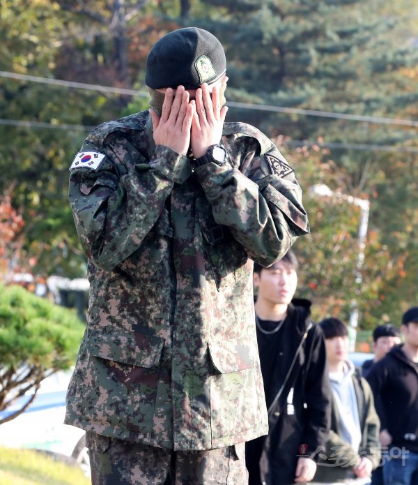 26일 경기도 용인시에 위치한 지상작전사령부에서 빅뱅의 지드래곤(권지용)의 전역 행사가 열렸다. 지드래곤이 팬들을 보며 눈물을 흘리고 있다.