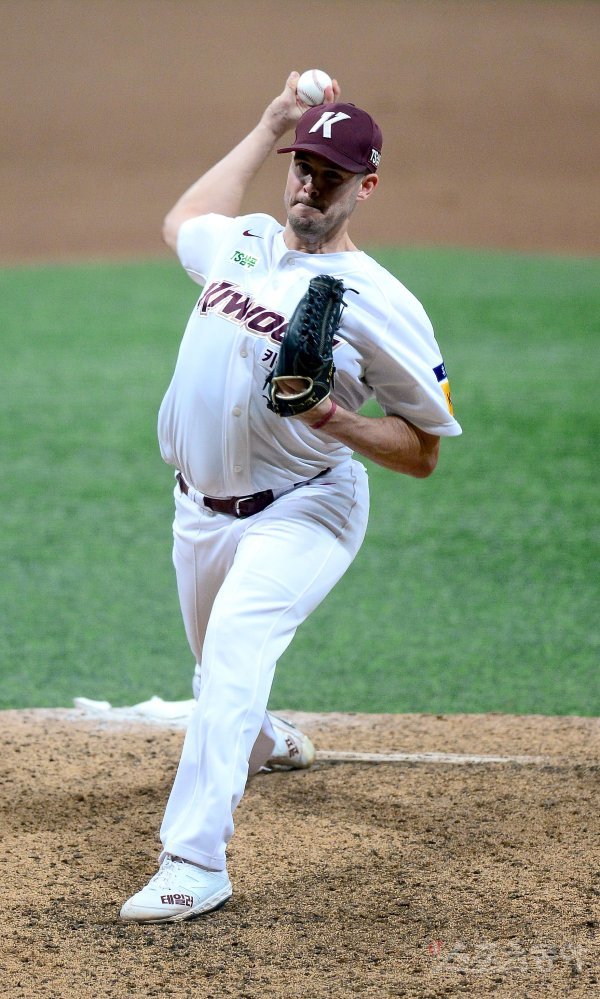 26일 서울 고척스카이돔에서 ‘2019 신한은행 MY CAR KBO 포스트시즌’ 두산 베어스와 키움 히어로즈의 한국시리즈 4차전이 열렸다. 9회초 교체 등판한 브리검이 역투하고 있다.