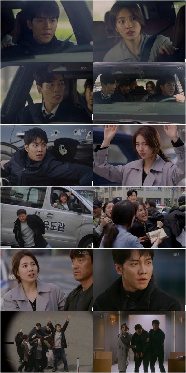 SBS 금토드라마 ‘배가본드’ 이승기와 배수지가 진실 찾기에 나선 유가족들의 목숨을 바친 살신성인 방어 작전에 사투를 이어갔다.