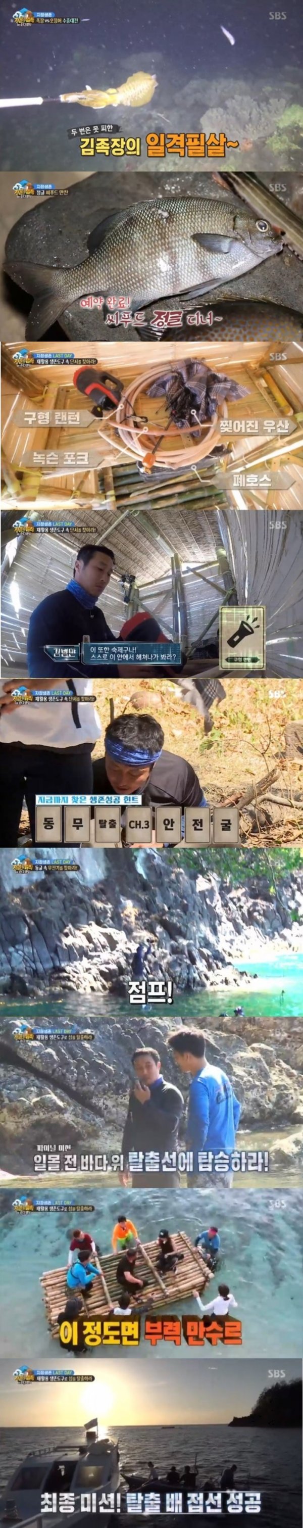 이날 방송은 성공적인 지정 생존을 해낸 멤버들의 모습이 공개됐다. 앞서 바다탐사를 나갔던 김병만은 각종 물고기와 오징어를 사냥해 병만족 저녁 만찬을 책임졌고, 멤버들은 환상의 오징어 맛에 감탄했다.