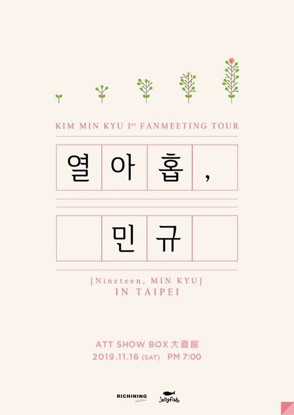 김민규의 대만 첫 단독 팬미팅 ‘KIM MIN KYU 1st FANMEETING TOUR [Nineteen, MIN KYU] IN TAIPEI’은 오는 11월 16일 대만 에이티티 쇼박스(ATT SHOW BOX)에서 개최된다.