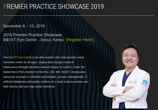 RSA는 안과전문의 협회로 현재 16개국 307명의 정회원을 두고 있다. 비앤빛 강남밝은세상안과는 11월 6~8일 50여명의 RSA 회원 및 안과전문의들을 초청해 컨퍼런스를 진행한다.