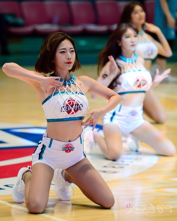 28일 경기도 부천실내체육관에서 열린 ‘하나원큐 2019-2020 여자프로농구’ 부천 KEB하나은행과 인천 신한은행의 경기에서 KEB하나은행 치어리더가 화려한 공연을 선보이고 있다.