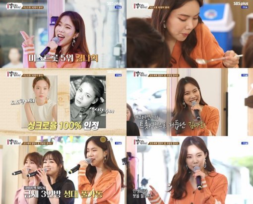 김나희는 지난 28일 방송된 SBS Plus '밥은 먹고 다니냐?'에 정미애, 김소유와 함께 '미스트롯' 3인방으로 출연했다.