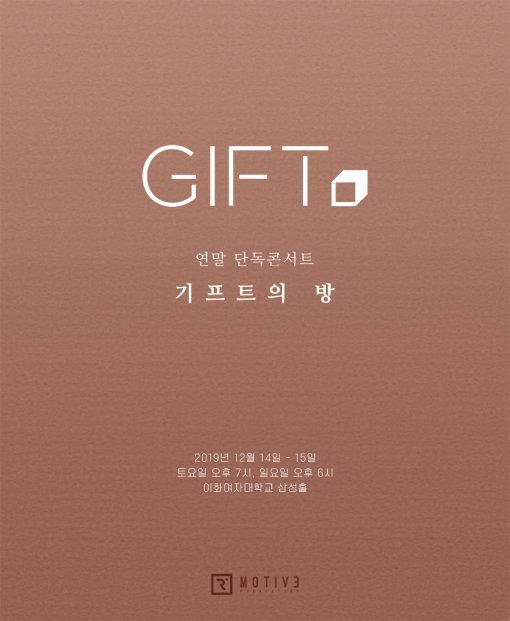 기프트(이주혁, 김형우)는 오는 12월 14일과 15일 양일간 이화여자대학교 삼성홀에서 연말 단독 콘서트 ‘기프트의 방’을 개최하고 팬들과 호흡한다.