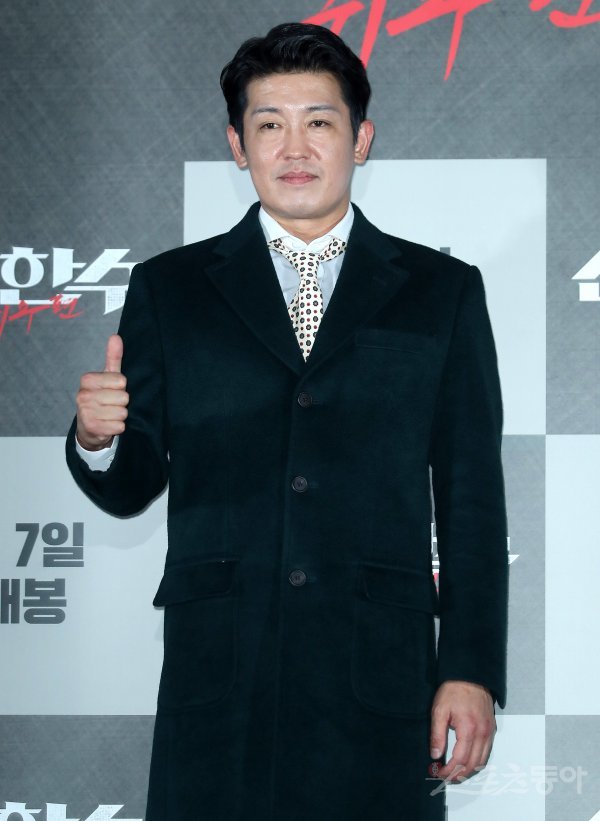 배우 허성태가 29일 서울 용산구 CGV 용산아이파크몰에서 열린 영화 ‘신의 한 수 : 귀수편’ 언론시사회에서 포즈를 취하고 있다.